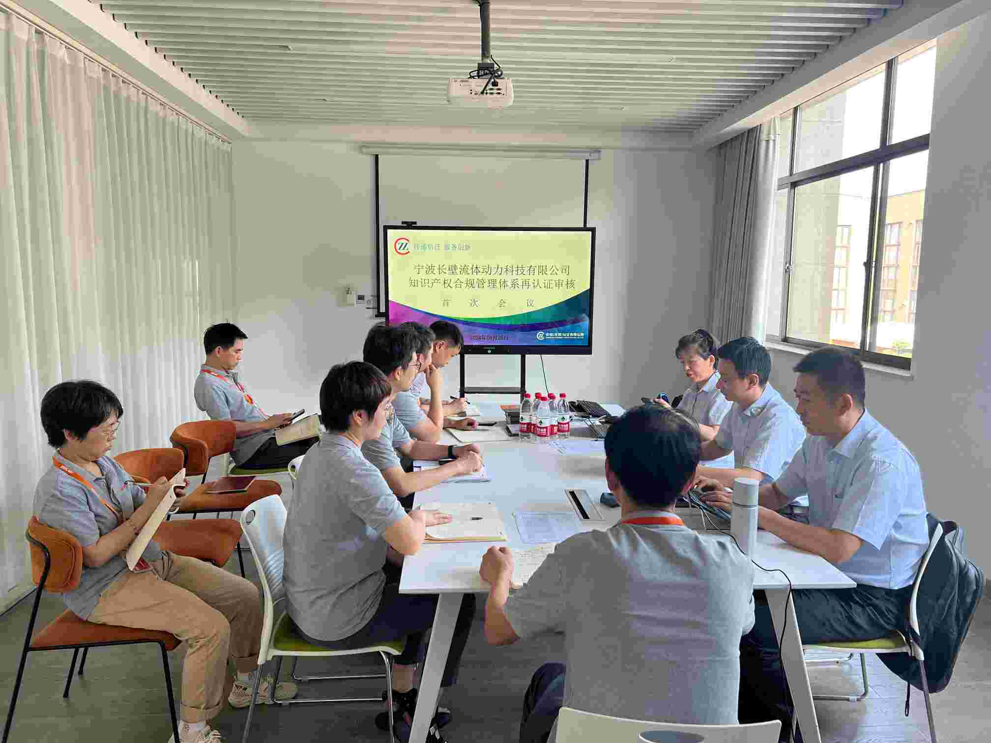 8月26日,宁波长壁知识产权合规管理体系再认证审核首次会议在行政会议室举行,财务部、销售部、采购部、生产部、技术部等各相关负责人出席了本次会议。