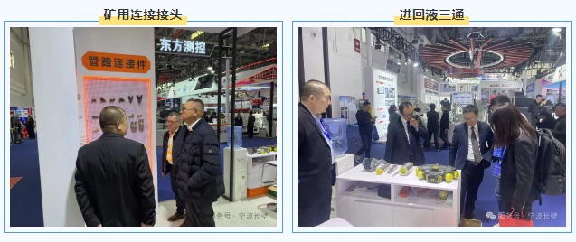 展会现场,各种矿用连接接头整齐陈列,形态各异,规格齐全。矿用连接接头分为普通型高压接头、普通型超高压接头和卡箍型接头、普通型软管接头、进回液三通等。