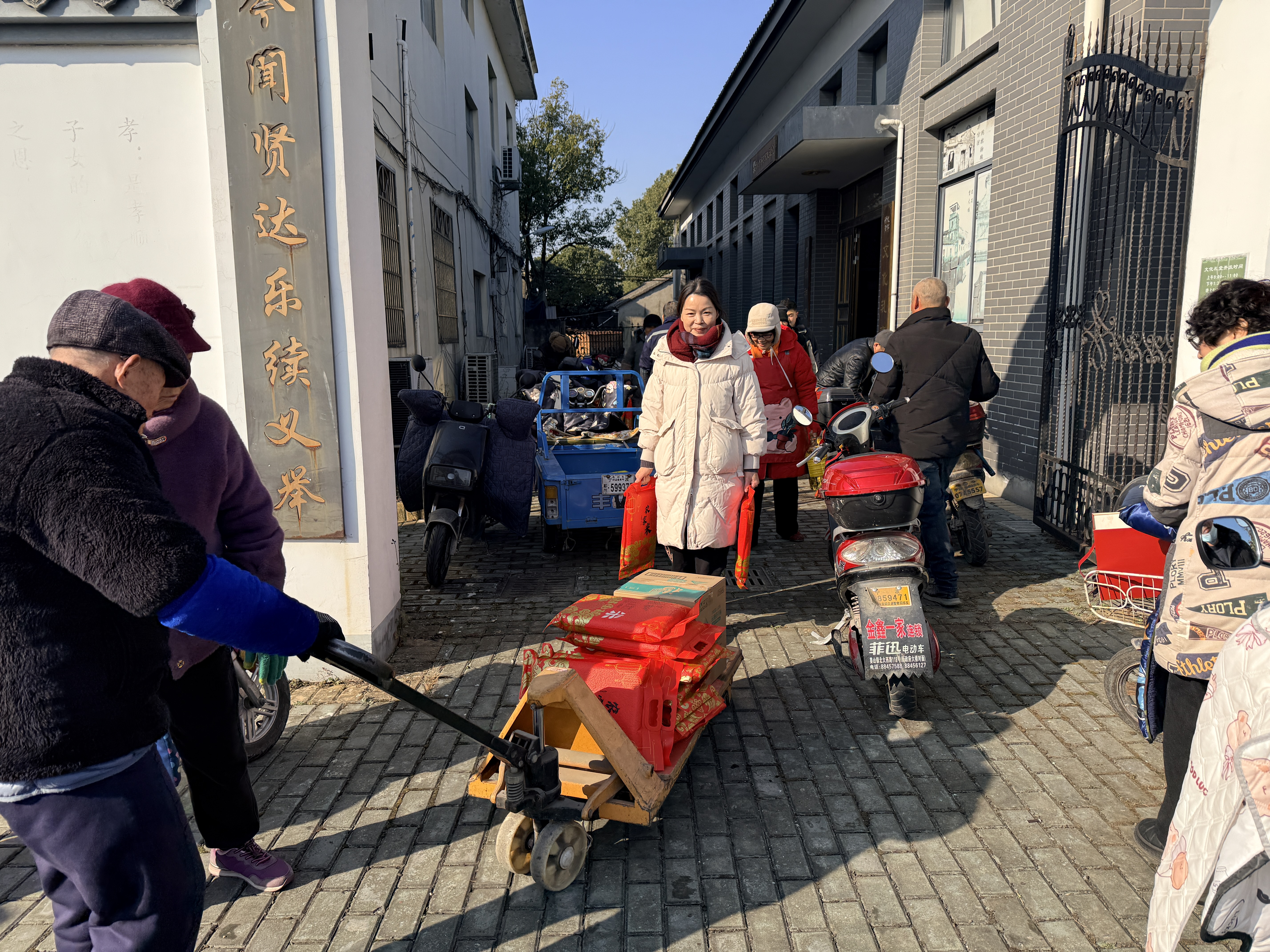 活动现场暖意融融,老人们有序排队领取大米与食用油。公司志愿者们热情地为老人递上物资,并送上“新年快乐、身体健康”的祝福。拿到沉甸甸的年货,老人们脸上都洋溢着幸福的笑容。今年,公司累计发放了728份慰问物资,覆盖了村里所有符合条件的老人。“每年都盼着他们来,这不仅是米油,更是一份惦记。”一位老人拉着志愿者的手感慨道。这份持续五年的坚持,早已让“春节慰问”成为陈介桥村老人们最温暖的期盼。