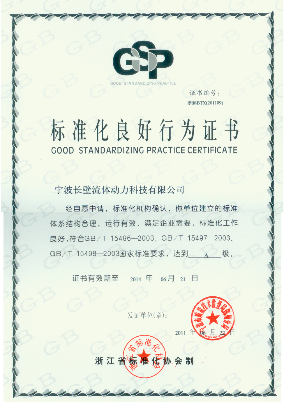 > 热烈庆祝本公司通过标准化体系!