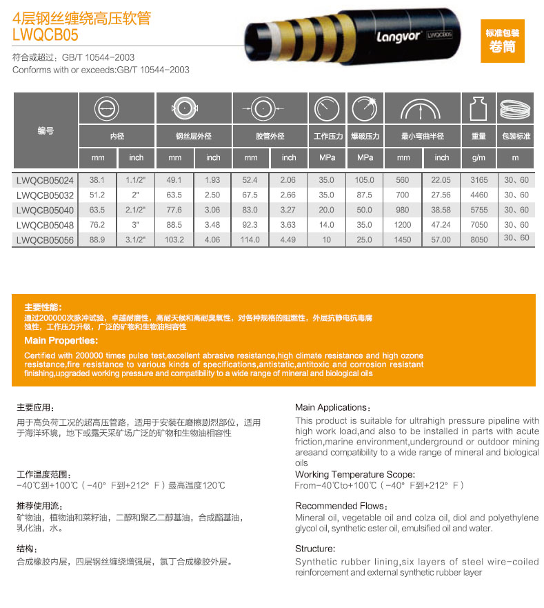 名 称:4层钢丝缠绕高压软管 LWQCB05
