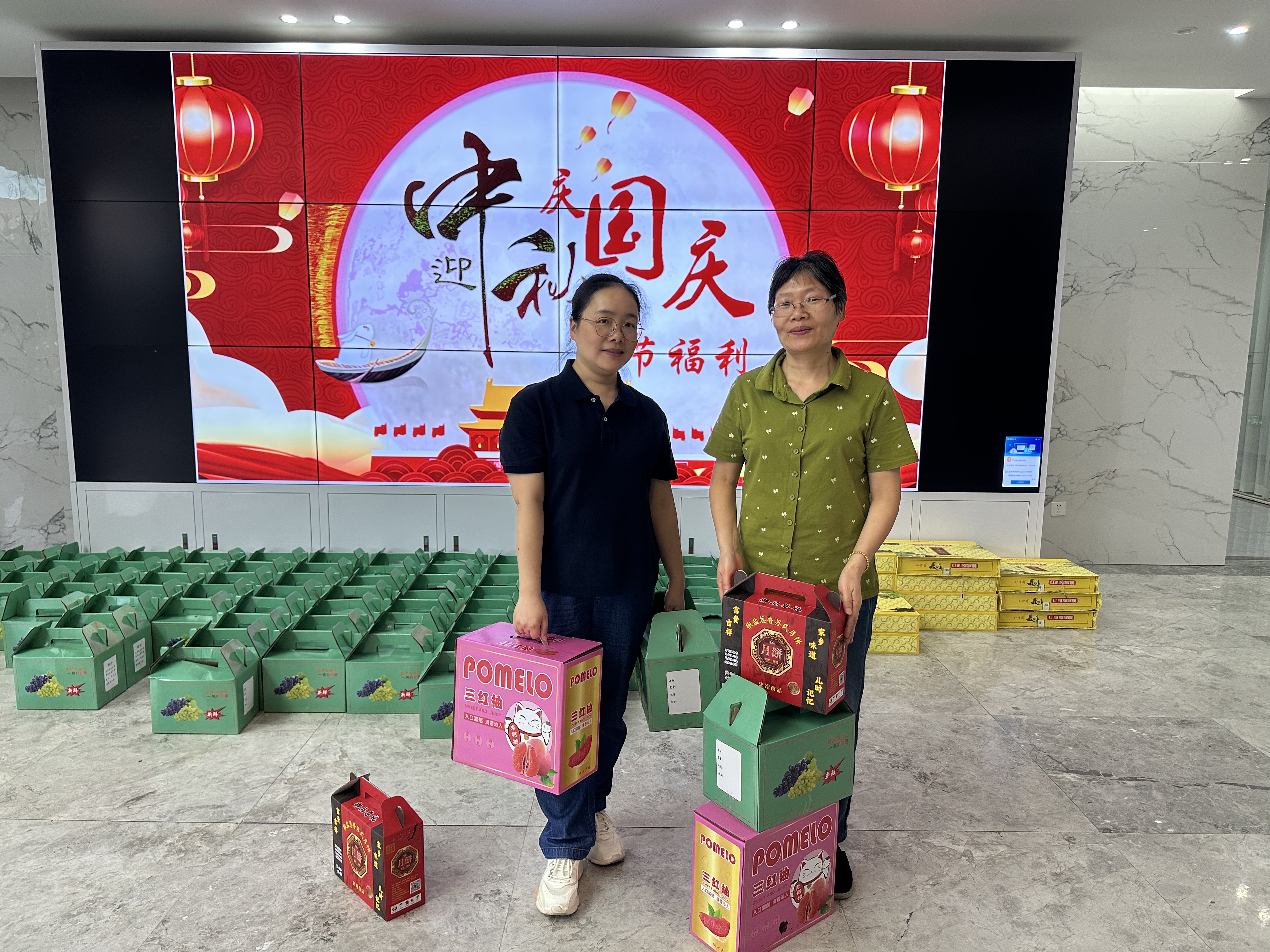 福利发放现场,一箱箱、一盒盒沉甸甸的礼物传递着公司对员工们的关爱及牵挂。公司行政部的同事们早早开始了筹备工作,只为确保将这份节日的祝福能够及时送到每一位家人们的手中。