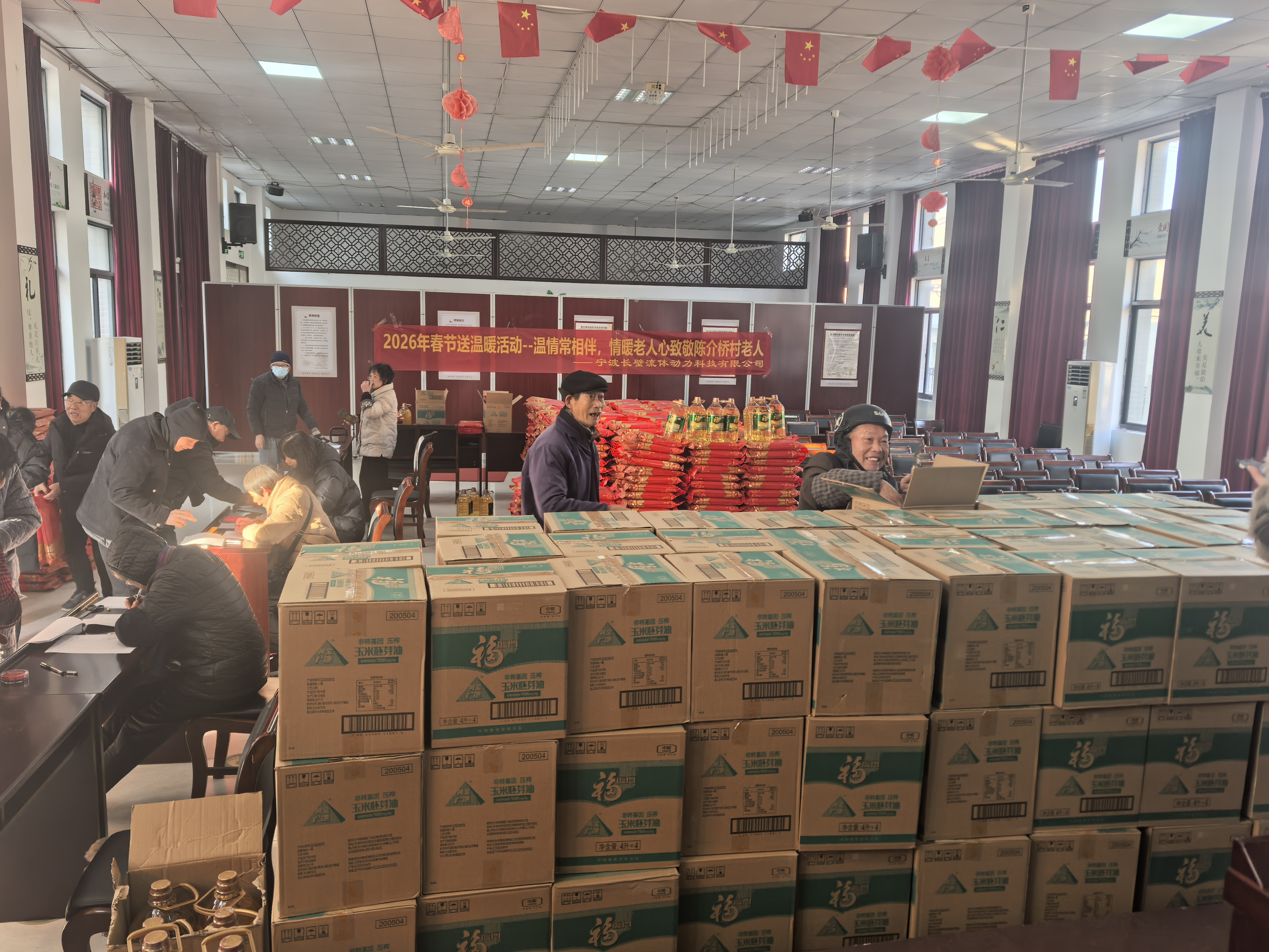 寒冬送暖,岁晚情浓。近日,宁波长壁流体动力科技有限公司的爱心团队再次走进陈介桥村,为全村60岁以上的老人送上新春慰问物资,这已是公司连续第五年开展此项暖心行动。